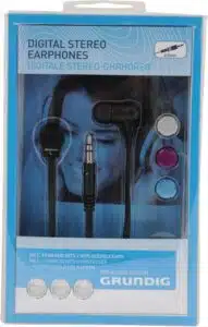 Grundig Digital Stereo Earphone, Flat Cable w/3 Caps