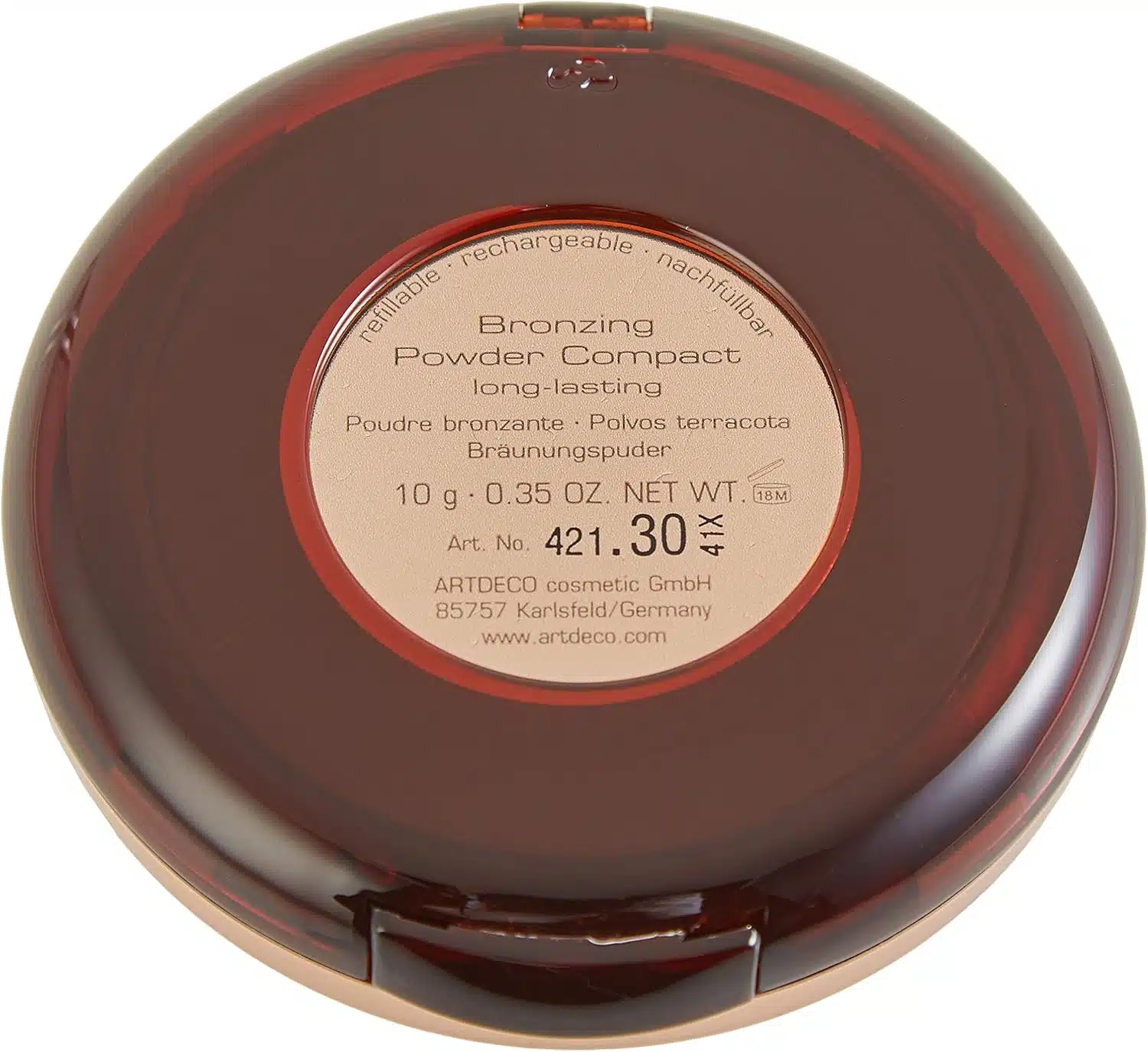 The Artdeco Compact Bronzing Powder not only adds warmth to your complexion but also defines your facial features beautifully. With its finely milled texture, it allows for easy blending, ensuring that you achieve a flawless look without any harsh lines. Simply apply to the hollows of your cheeks, temples, and along the jawline for a sculpted effect, or dust lightly across your forehead and nose for an all-over sun-kissed glow. The bronzing powder is perfect for layering, allowing you to build intensity according to your preference, whether you desire a subtle enhancement or a bold, bronzed appearance.