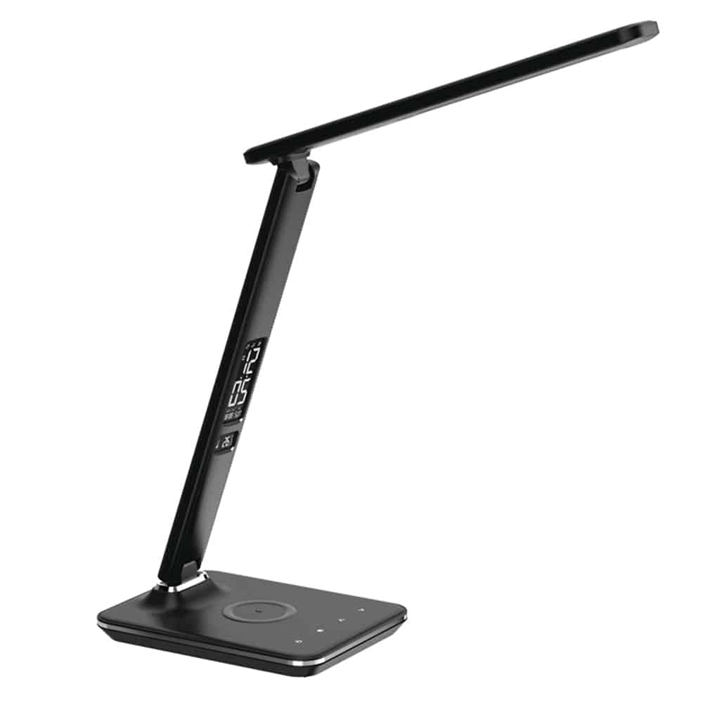 Elevate your workspace with the Groov-e GVWC04 BK Ares Desk LED Lamp with Wireless Charging Pad & Clock, and experience the perfect combination of light, technology, and style.