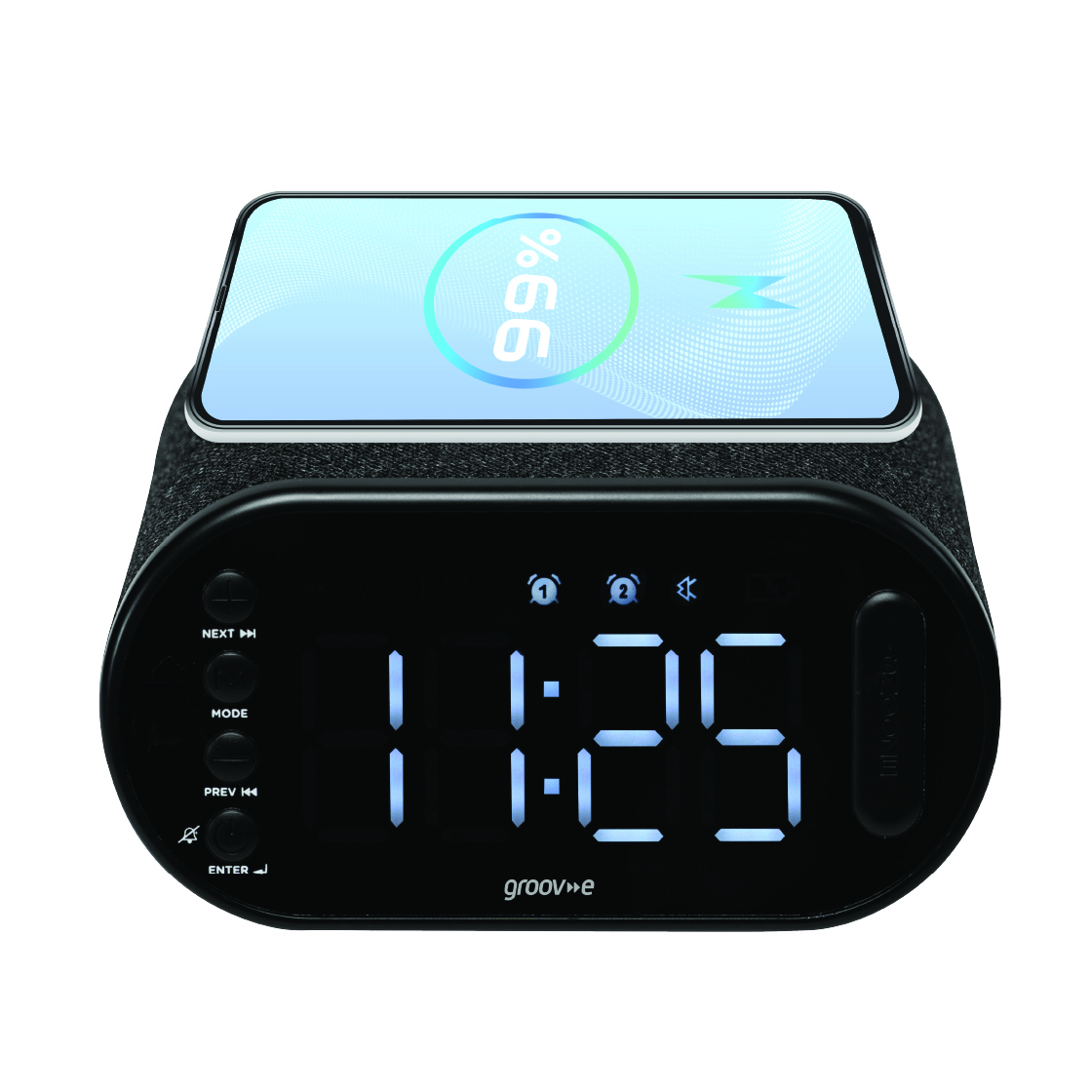 Groov-e GVCR06BK Atlas II Alarm Clock Radio with Bluetooth Speaker & Wireless Charging Pad