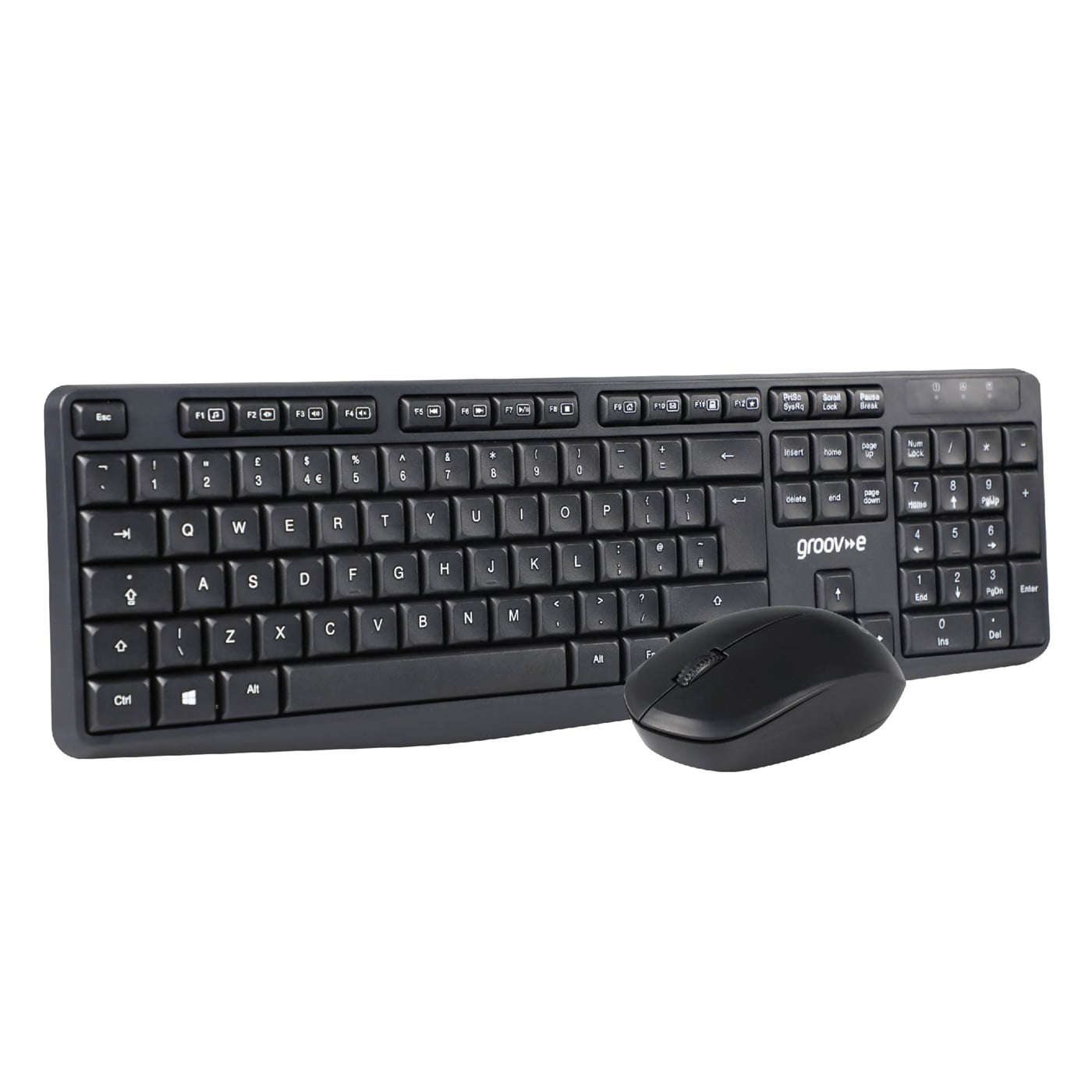 Built with durable materials, the set requires minimal maintenance and is designed for everyday use. Both devices utilize standard USB receivers for easy connection across compatible systems. Groov-e, known for delivering affordable and reliable consumer electronics, ensures this set meets practical needs without unnecessary complexity.
