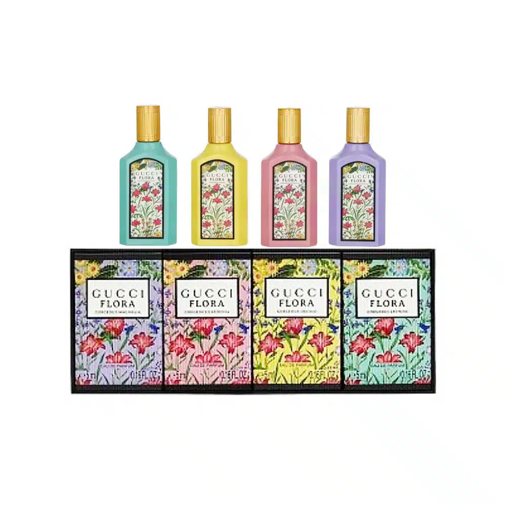 • Includes four 5 ml miniature bottles of Gucci Flora fragrances.