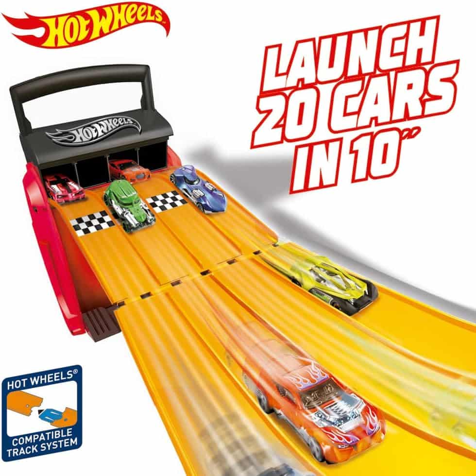• Dual Functionality: Transforms from a secure car storage case to a racing launcher.