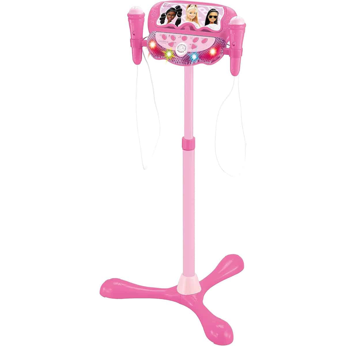 Unleash your creativity with the Lexibook Barbie Stand! Enjoy voice effects, lights, and Bluetooth speaker fun. Perfect for aspiring performers!