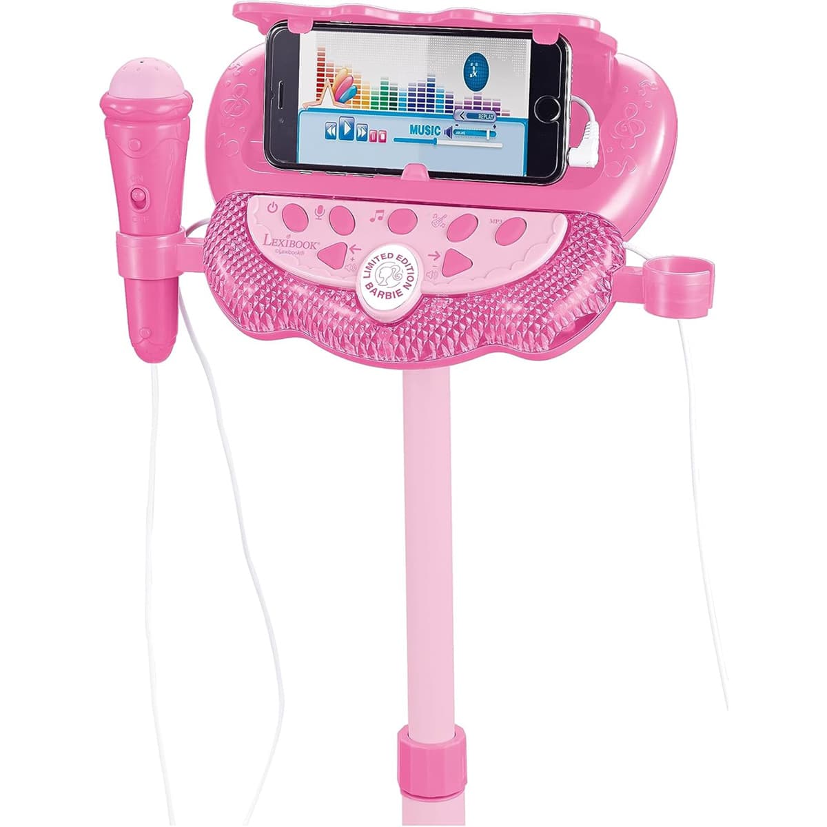 The Lexibook Barbie Stand is made from high-quality, durable materials designed to withstand enthusiastic play. Care instructions are simple: wipe with a damp cloth to keep it clean and vibrant. It operates on batteries, making it easy to use anywhere without the need for a power outlet. The stand is also compatible with a variety of devices, ensuring that kids can enjoy their entire music library.