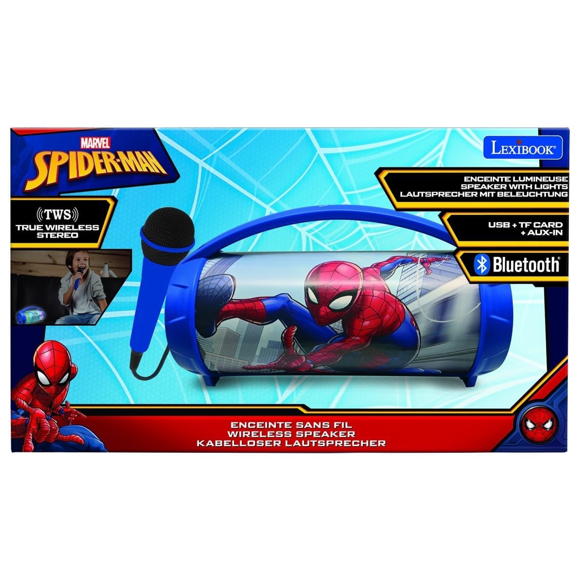 Enjoy powerful sound and vibrant lights with Lexibook Spider-Man Bluetooth Speakers!