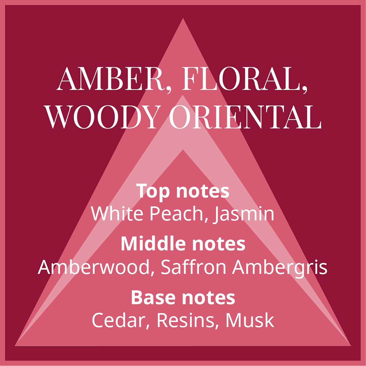 This Eau de Parfum enhances your confidence with its distinctive dark red fragrance, perfect for evening events or whenever you want to make a memorable impression. The composition’s balance of freshness, floral heart, and warm base notes creates a multi-dimensional scent profile that evolves on your skin.