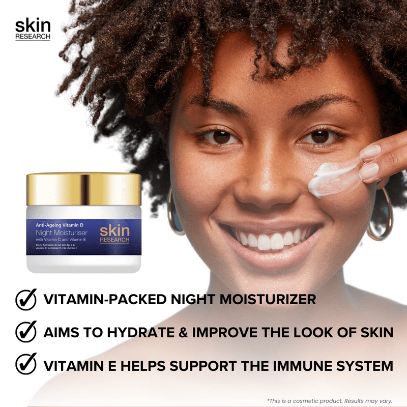 Revitalize your skin overnight with Skin Research Anti-Ageing Vitamin D Night Moisturiser.