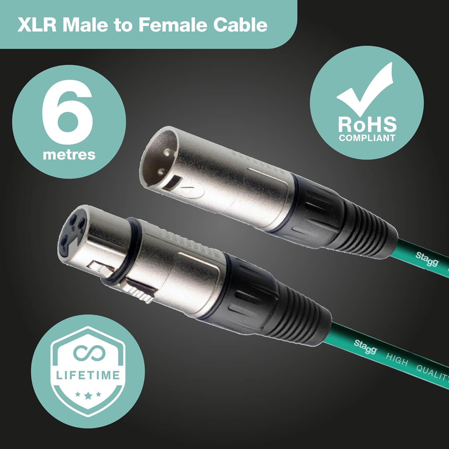 Stagg SMC6CGR High Quality Microphone Cable XLR-XLR Plug 6m – Green