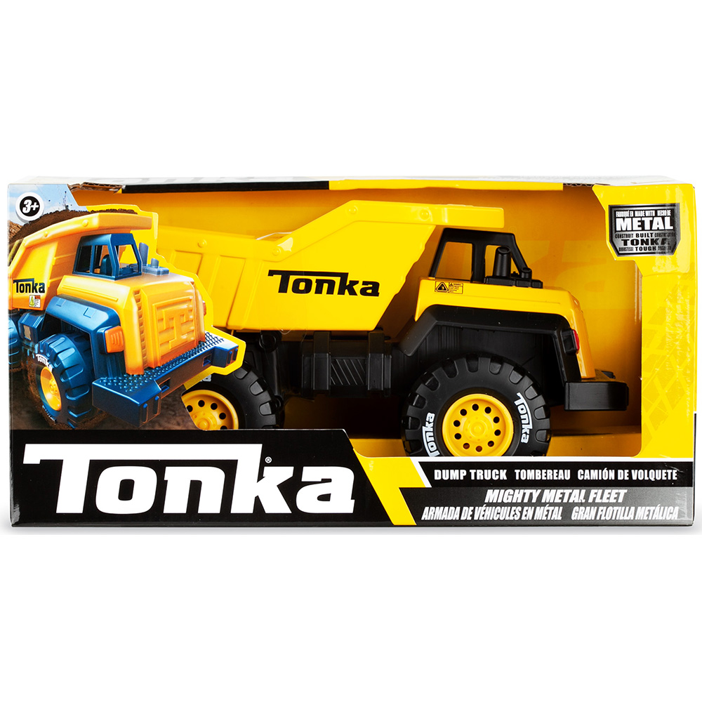 Constructed with a robust metal body and durable plastic components, the Tonka Dump Truck is designed to withstand the rigors of playtime, both inside the house and outdoors. To maintain its quality, simply wipe clean with a damp cloth. This toy is built to last, ensuring it can be enjoyed across generations.