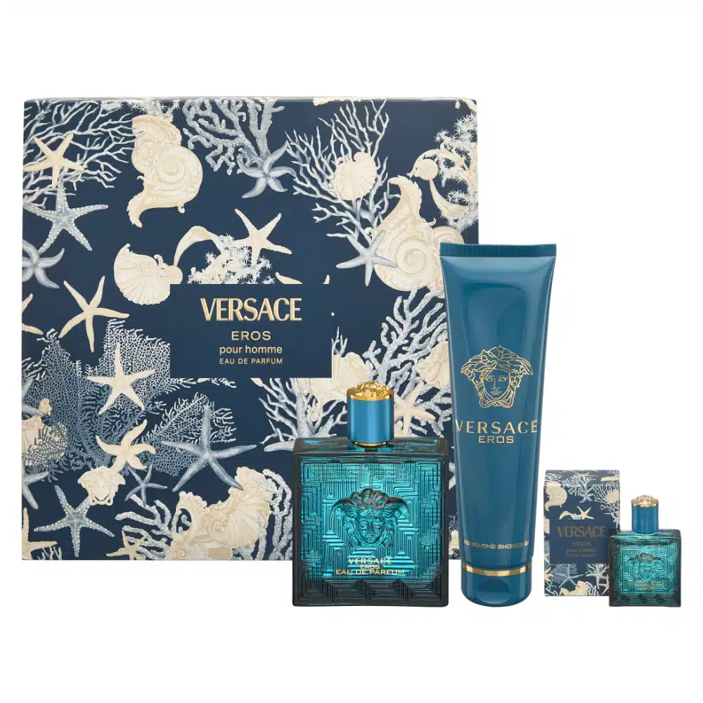Experience the allure of Versace Eros with this luxurious gift set, featuring a 100 ml EDP, a 5 ml EDP, and a 150 ml Bath and Shower Gel for ultimate freshness. Perfect for gifting or personal indulgence.