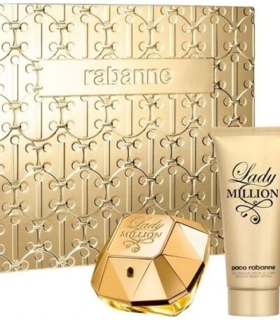 Indulge in luxury with the Paco Rabanne Lady Million Gift Set, featuring an 80 ml EDP, 100 ml body lotion, and a 5 ml EDP for on-the-go elegance.