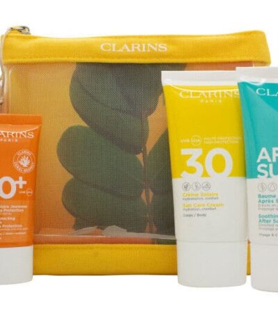 Clarins Essential Sun Care Travel Set 50ml Very High Protection Sun CreamSPF50 + 15ml Gentle Peeling + 75ml Soothing After Sun Balm