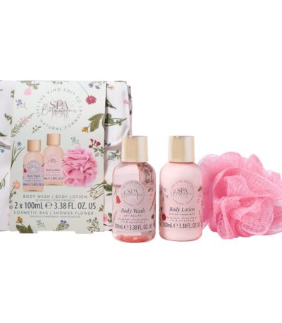 The Kind Edit Co. Spa Botanique Mini Shower Gift Set 100ml Body Wash + 100ml Body Lotion + Shower Flower + Bag