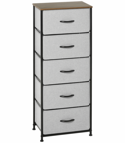 Homcom 5 Drawer Fabric Chest of Drawers w/ Wooden Top for Closet Hallway Grey