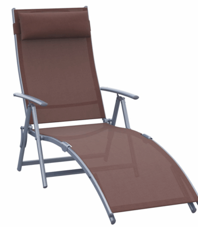 Outsunny Sun Lounger Recliner w/ Pillow Foldable 7 Levels Texteline Brown