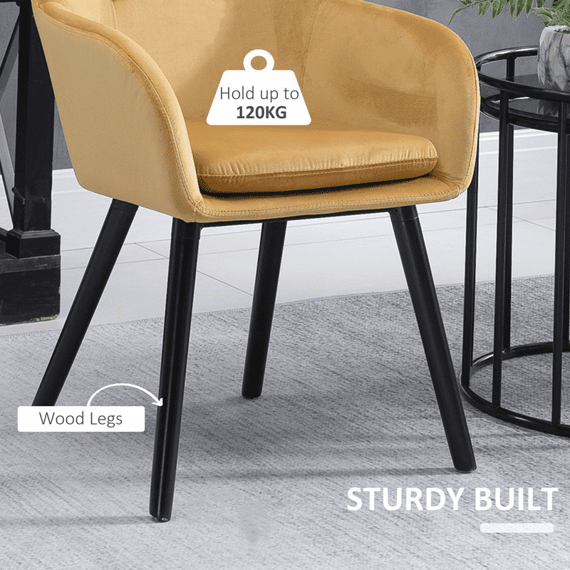 Transform your dining space today with the Homcom 2 Pieces Modern Upholstered Fabric Bucket Seat Dining Room Armchairs in yellow, where comfort meets style, and enjoy the perfect blend of form and function.