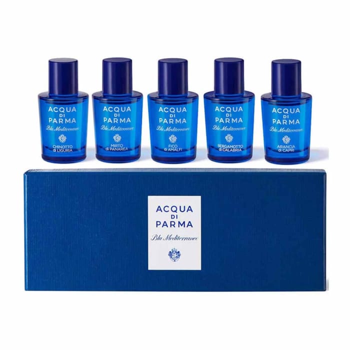 Discover the essence of the Italian Mediterranean with the Acqua di Parma Blu Mediterraneo Miniature Set. This exquisite collection features five enchanting fragrances, each encapsulated in a convenient 5 ml bottle, making it the perfect companion for those who appreciate the art of fine perfumery. Ideal for travel or as a thoughtful gift, this set allows you to experience the diverse olfactory landscapes of Italy, from sun-kissed citrus to delicate floral notes.