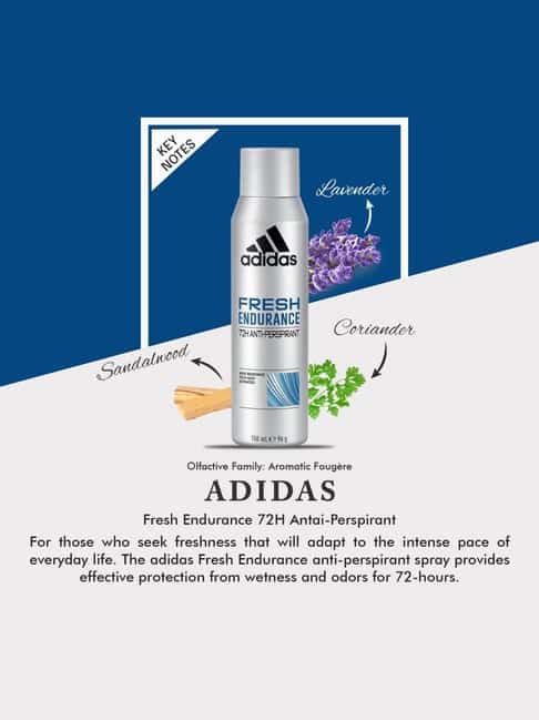 This deodorant spray is made from high-quality materials that are both effective and skin-friendly. To maximize efficiency, apply to your underarms after showering or exercising. For best results, keep the spray in an upright position and apply from a distance of about 15 cm. The Adidas Fresh Endurance Deodorant Spray is suitable for all skin types and can be incorporated seamlessly into any grooming routine.