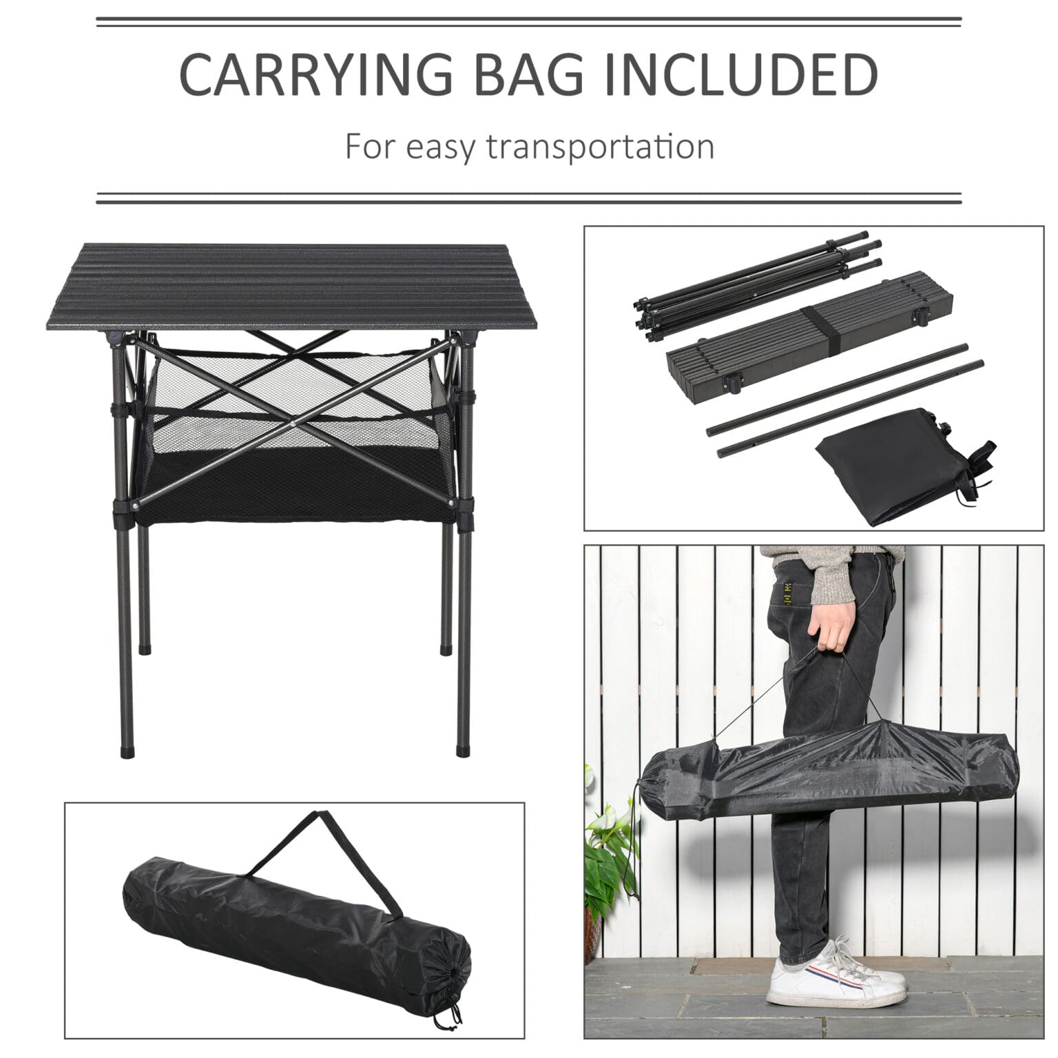 The Outsunny Aluminum Camping Table offers unparalleled convenience and functionality. Its roll-top design allows for quick setup, so you can enjoy your outdoor activities without wasting time. The lightweight aluminum construction means you can easily carry it wherever you go, while the sturdy legs ensure it remains stable, even on uneven ground. The included mesh bag makes storing and transporting the table a breeze, keeping your hands free for other essentials.