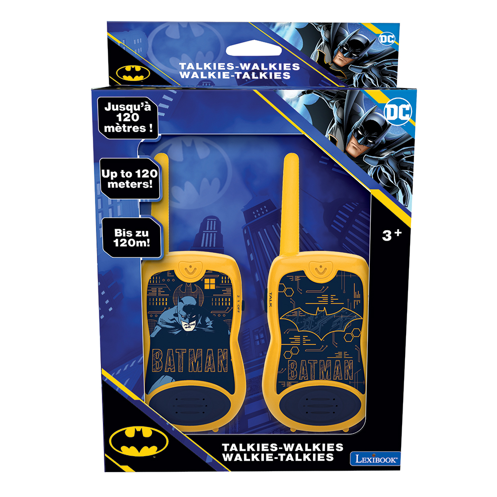 Introducing the Lexibook TW12 BAT Batman Walkie-Talkies, the perfect communication tool for young superheroes! Designed to ignite the imagination and enhance outdoor adventures, these walkie-talkies bring the excitement of the Batman universe right into your child's hands. With a range of up to 120 meters, young adventurers can stay connected during their quests, whether they are in the backyard, at the park, or on a camping trip.