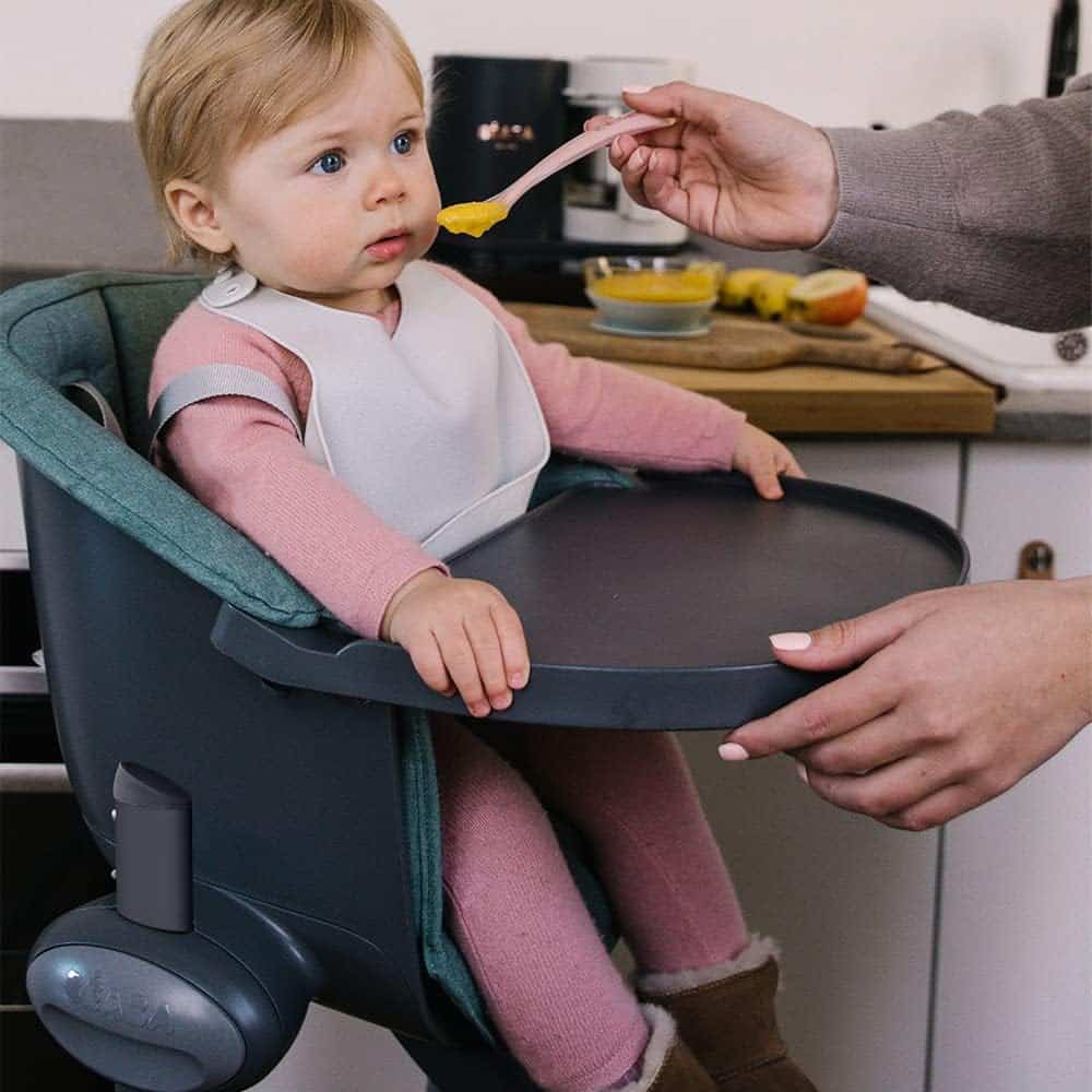- Height-adjustable seat that allows for easy transition from highchair to regular chair.