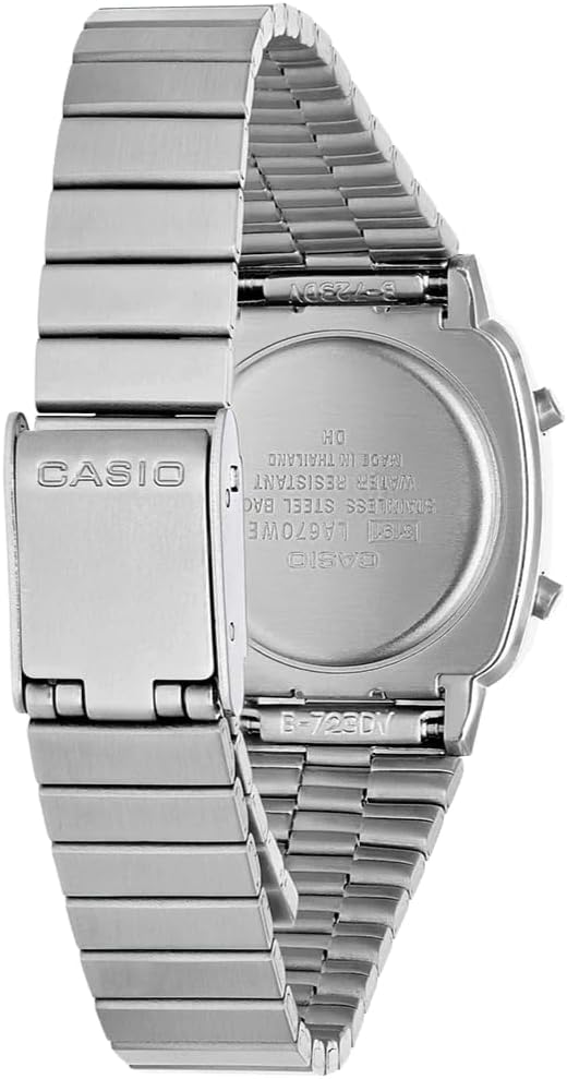The Casio LA670 WEA-7 EF is crafted with high-quality materials, ensuring both style and durability. The stainless steel band is designed for easy maintenance and can be wiped clean with a soft cloth. To ensure the longevity of your watch, avoid exposure to harsh chemicals and extreme conditions. Regularly check the battery to ensure it remains operational.
