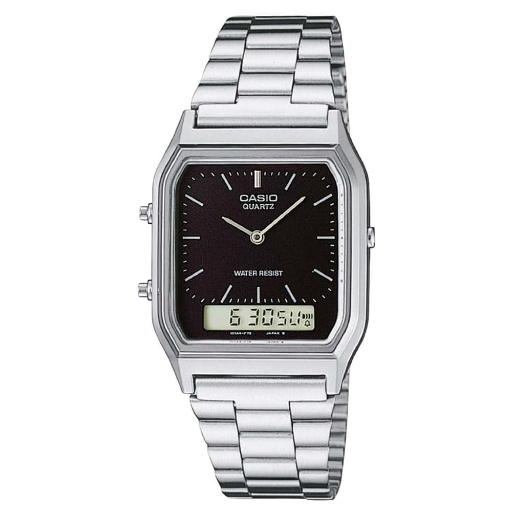 Casio AQ-230A-1DMQYES Mens Classic Combi Watch – Silver with Black Dial