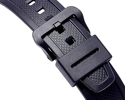 - Lightweight black resin case and band for comfort and durability