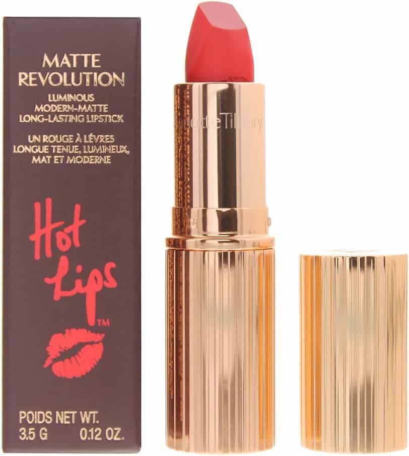 The Charlotte Tilbury Matte Revolution Hot Lips Lipstick not only offers stunning color but also ensures that your lips feel as good as they look. Its innovative formula is designed to provide a comfortable, weightless wear that lasts all day. With its rich pigmentation, one swipe delivers vibrant color that doesn't feather or fade. Perfect for any occasion, simply apply directly to the lips for an instant pop of color or layer for a more intense look. The lipstick's soft-focus technology blurs imperfections and creates the illusion of fuller lips, making it a must-have for any beauty enthusiast.