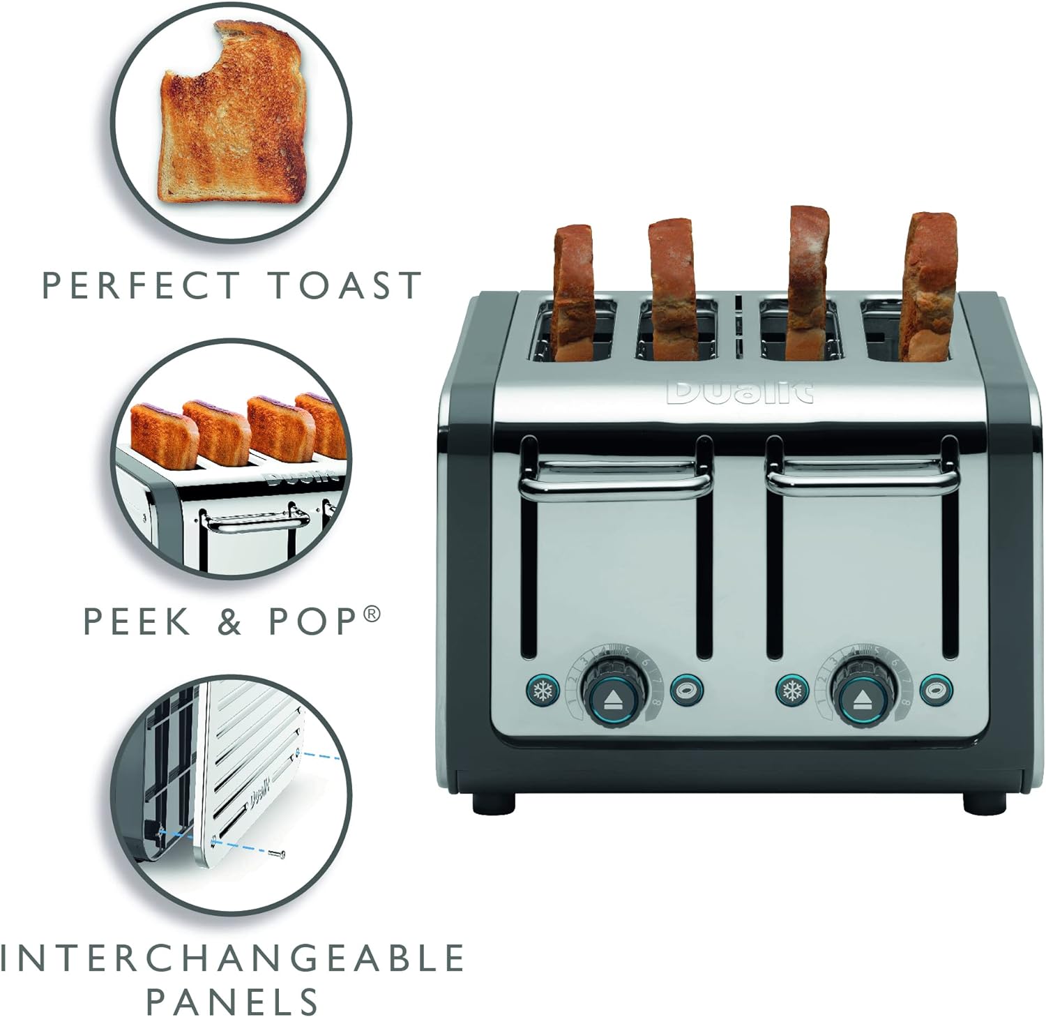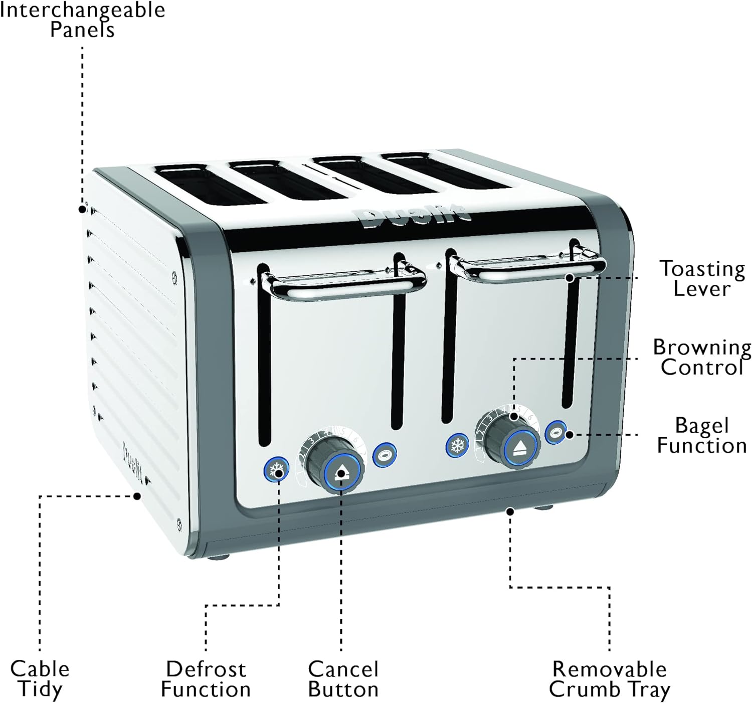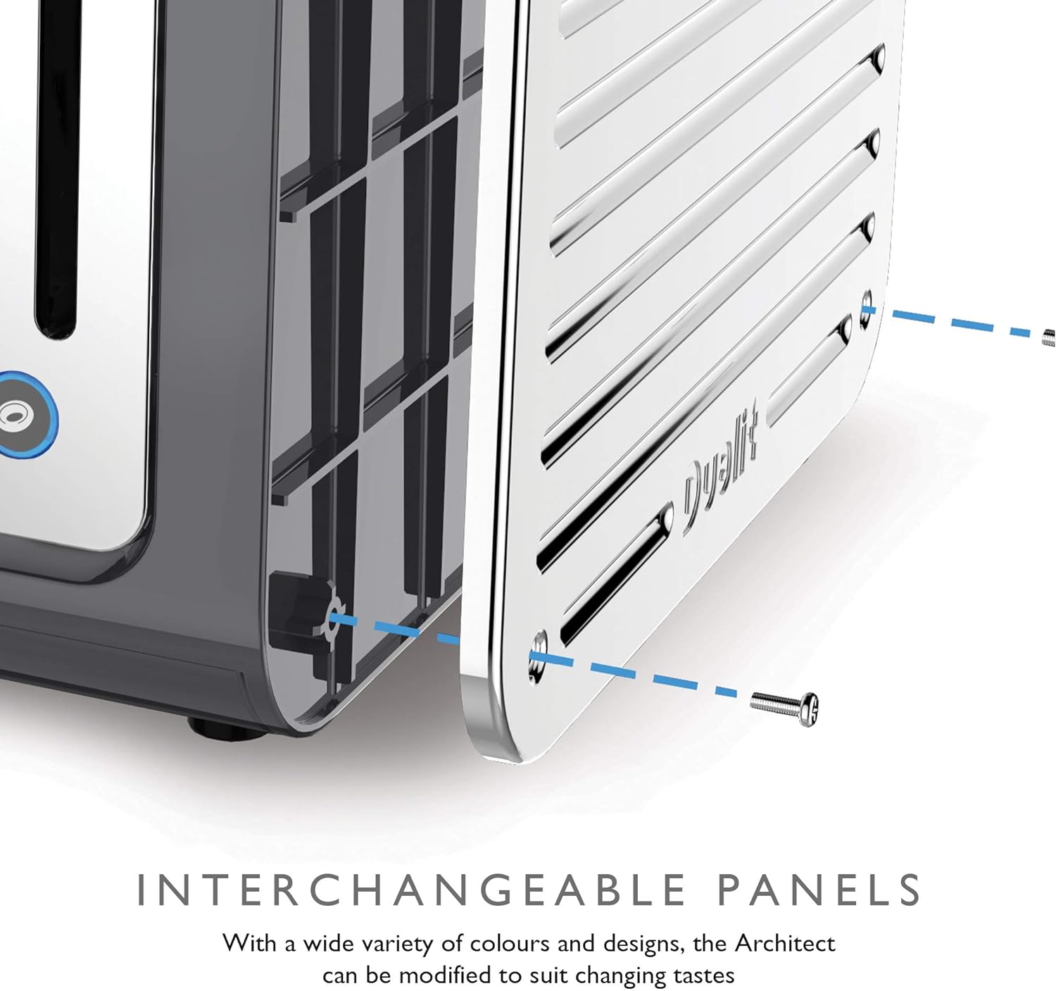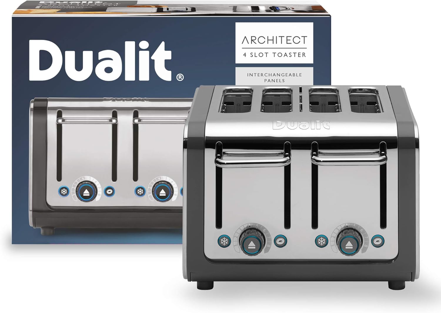 Choose the Dualit DA4526 4 Slot Architect Toaster in Grey for a reliable, stylish, and customizable toasting experience that enhances your culinary routine. Say goodbye to mediocre toast and hello to a new breakfast standard.
