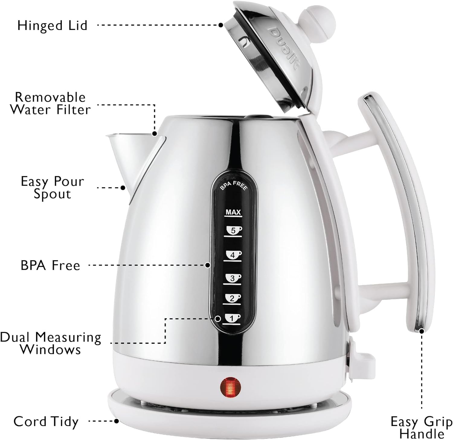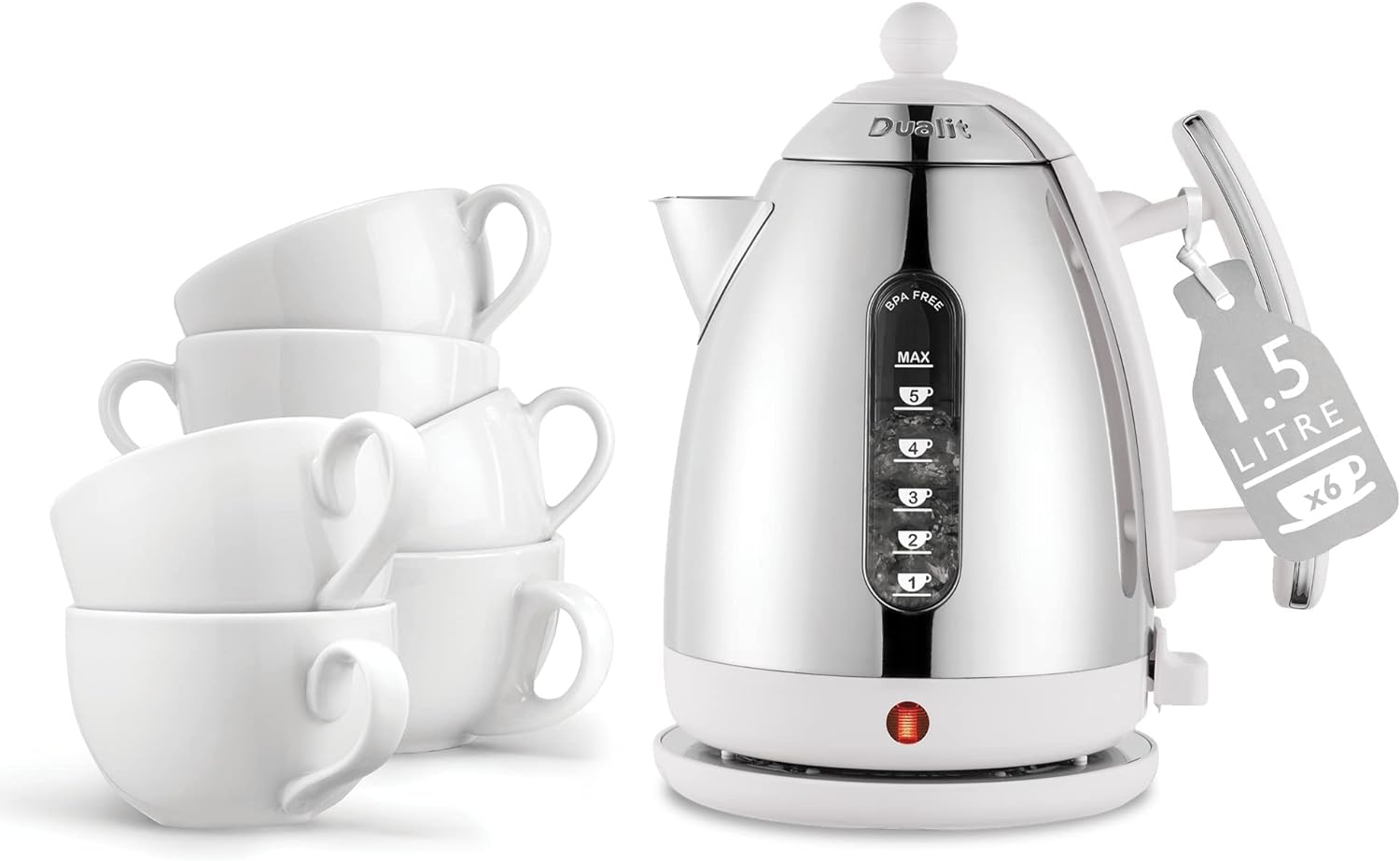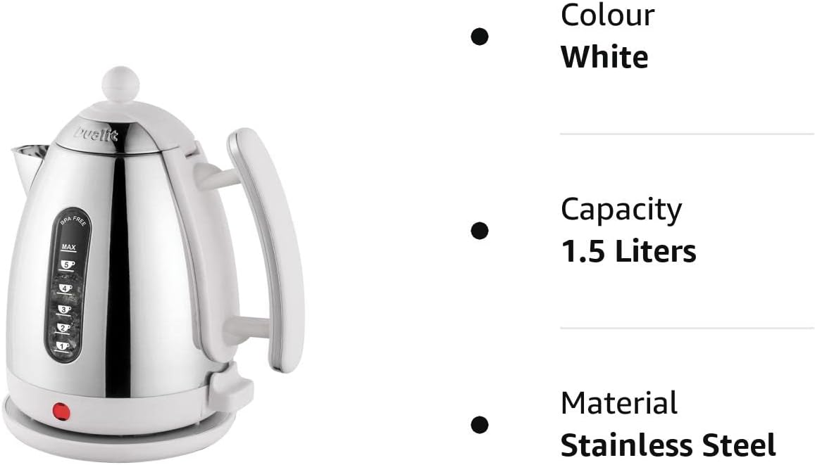 Upgrade your kitchen with the Dualit DA7205 1.5 L Lite Jug Kettle and enjoy the benefits of a reliable, stylish appliance that meets all your boiling needs while adding a touch of elegance to your countertop. Experience the perfect combination of design and performance with Dualit.