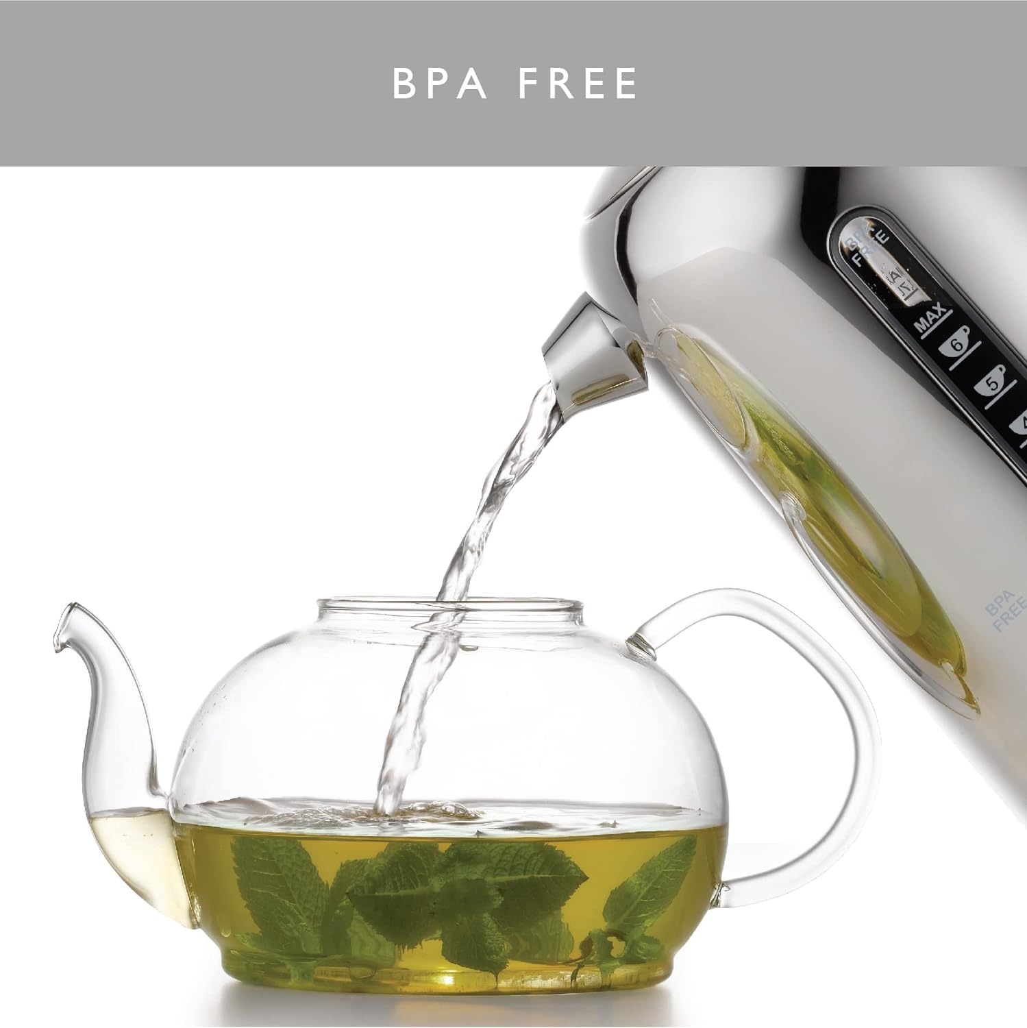 • 1.5-liter capacity, allowing you to boil enough water for multiple cups of tea or coffee.