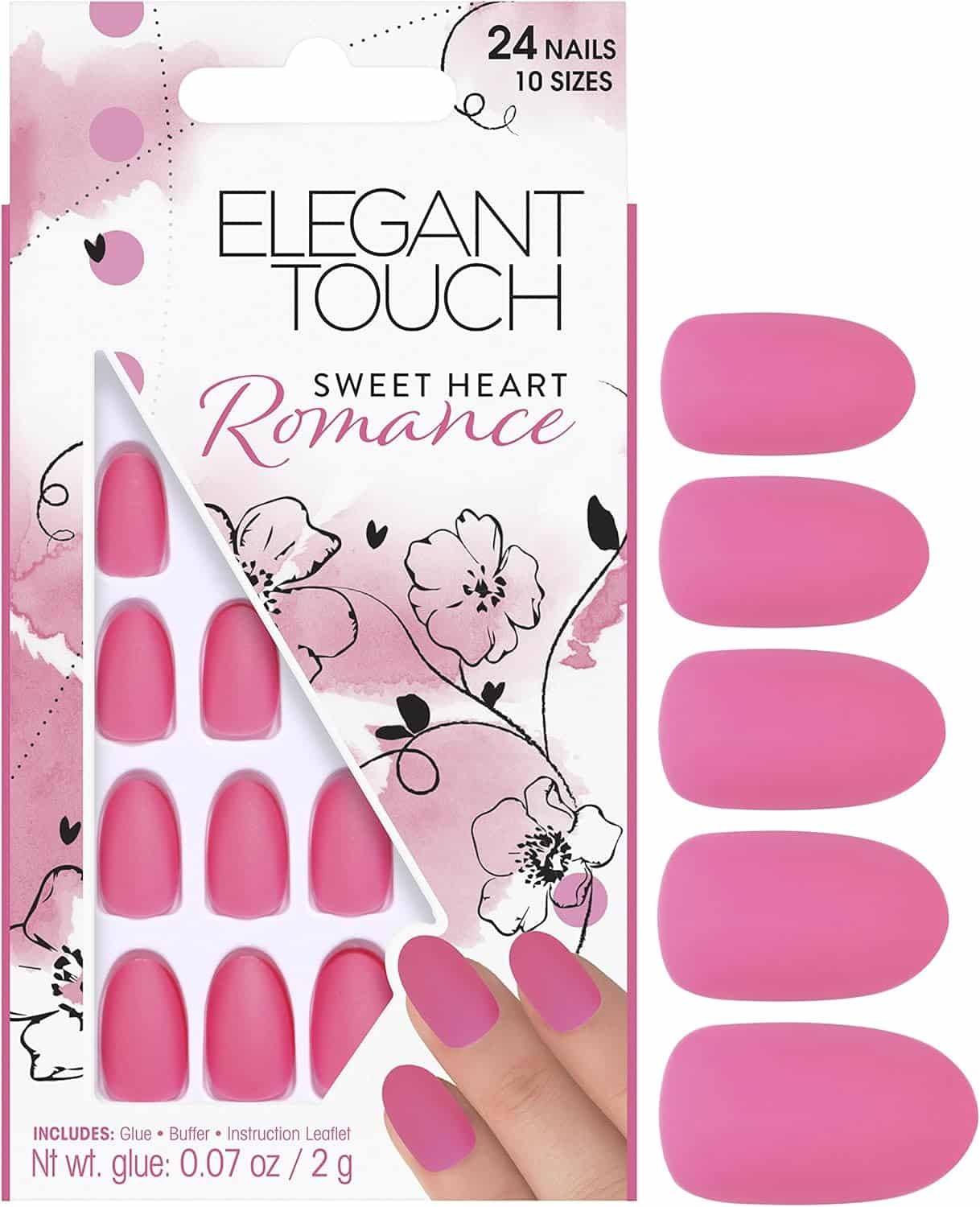 Elevate your nail game with the Elegant Touch Oval 24 False Nails with Glue in Sweet Heart Romance and experience the perfect combination of beauty and convenience.