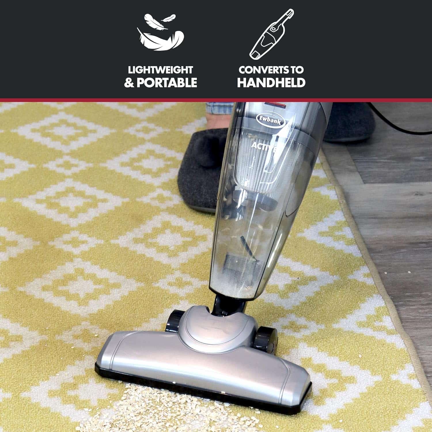 - 2-in-1 design: Easily switches from an upright vacuum to a handheld unit for versatile cleaning.