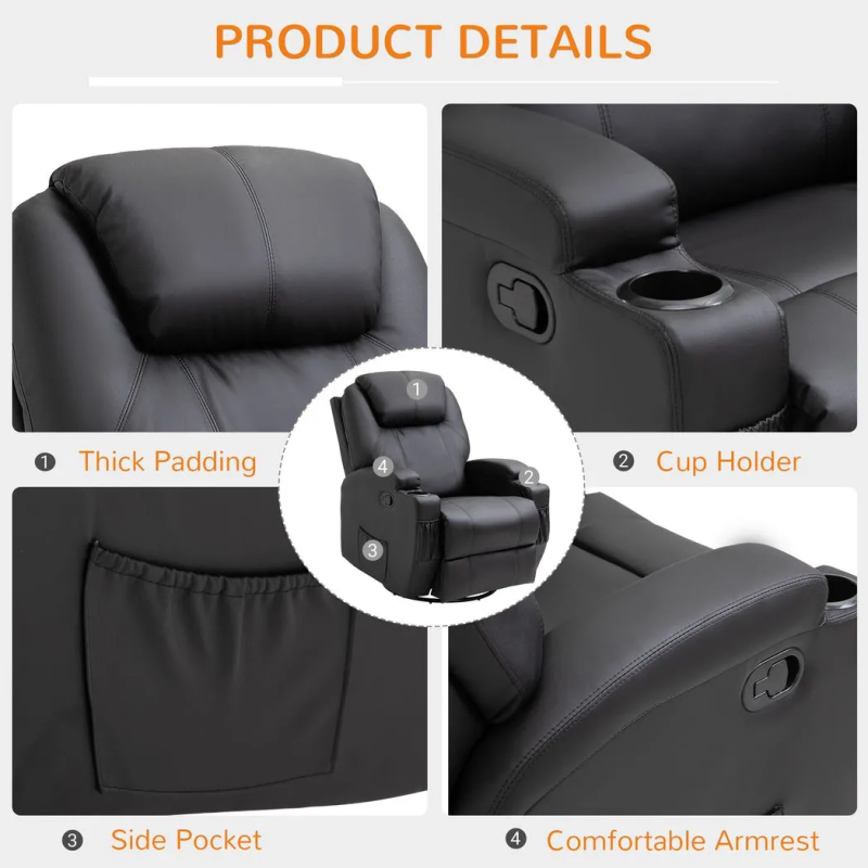 The Homcom Recliner is not just a chair; it’s a sanctuary for relaxation. The eight-point vibration massage system targets key areas of tension, helping to alleviate stress, reduce muscle soreness, and improve circulation. With the convenient remote control, you can easily select your preferred massage intensity and recline angle, allowing you to create a customized experience tailored to your needs. This chair is perfect for anyone who seeks comfort and relief, from busy professionals to active seniors.