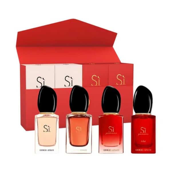 • Includes four 7 ml Eau de Parfum fragrances: Si, Si Passione, Si Passione Eclat, and Si Intense.