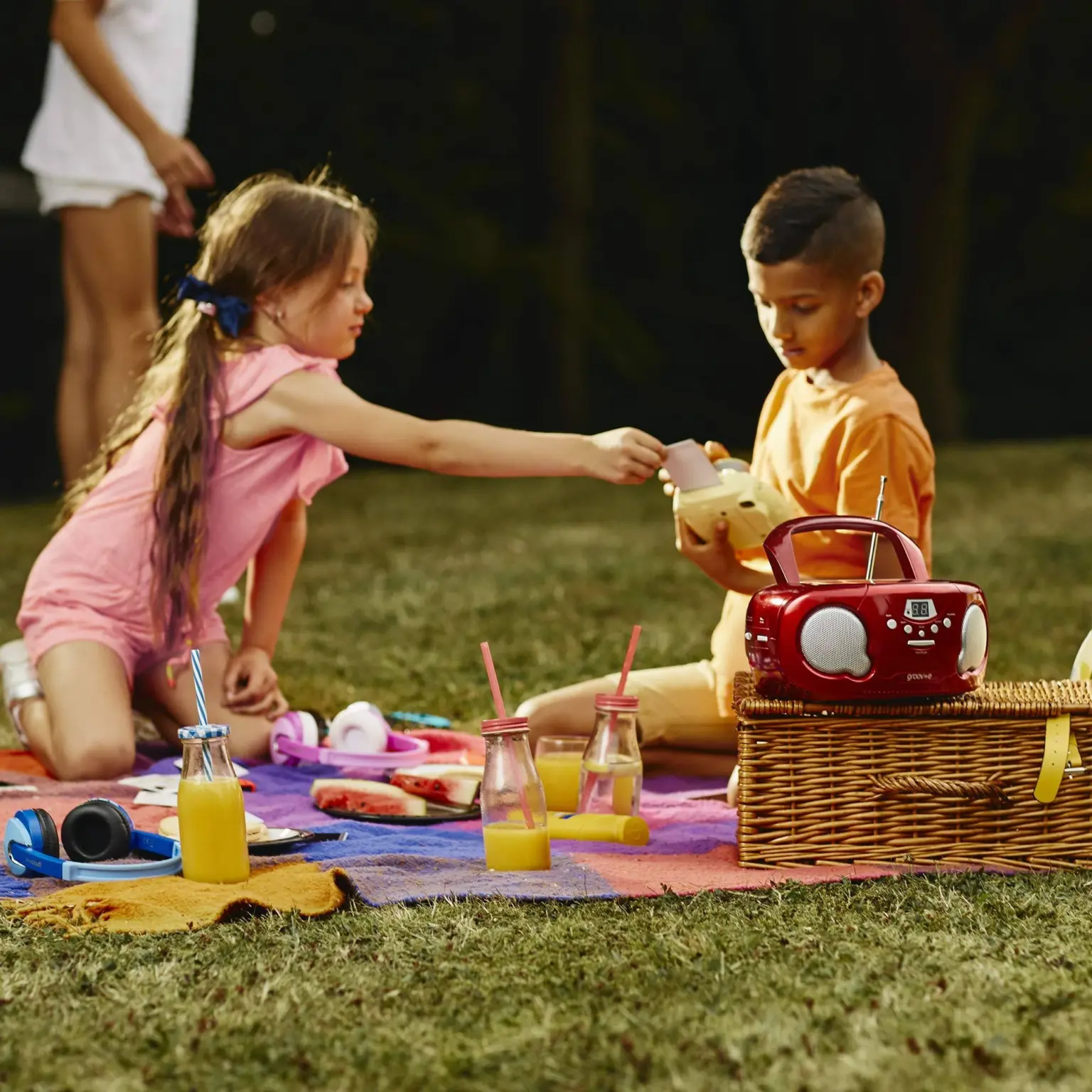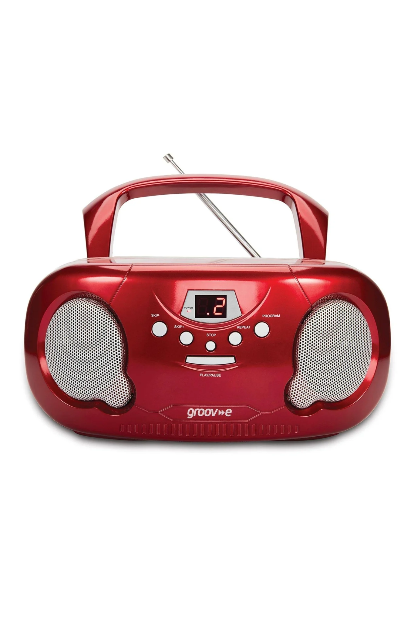 Introducing the Groov-e GVPS733 RD Original Boombox Portable CD Player with Radio in a vibrant red finish, a nostalgic nod to the iconic boombox era that effortlessly combines classic style with modern functionality. This versatile music player is designed for those who appreciate the simplicity of CDs and the convenience of radio, all while enjoying a portable audio solution that goes wherever you do. Whether you're hosting a backyard barbecue, chilling at the beach, or simply relaxing at home, the Groov-e Boombox brings your favorite tunes to life with ease and clarity.