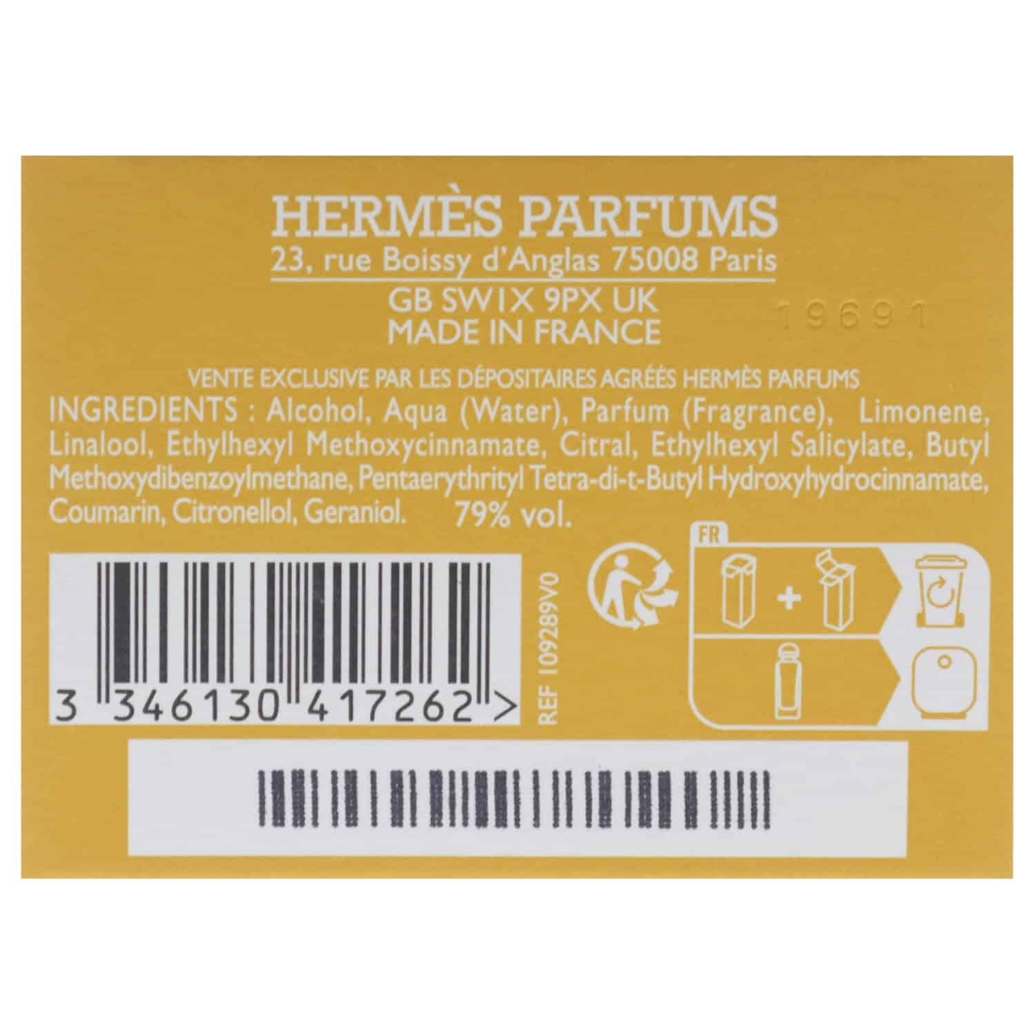 • Packaging: Elegantly designed bottle that reflects the sophistication of the Hermes brand.