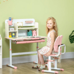 Transform your child's space into a hub of creativity and learning with the Homcom Kids Desk and Chair Set with Storage Shelves, where every day can be an adventure in discovery and imagination.