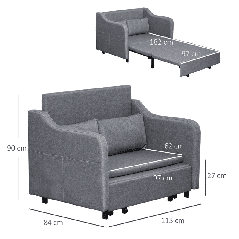 Introducing the Homcom Pull Out Sofa Bed, a versatile and stylish addition to any living space. This 2-seater sofa couch is designed for those who value comfort without compromising on style. Ideal for small apartments, guest rooms, or cozy living areas, this sofa bed effortlessly transforms from a chic seating option to a comfortable bed in seconds, making it perfect for entertaining guests or relaxing after a long day.