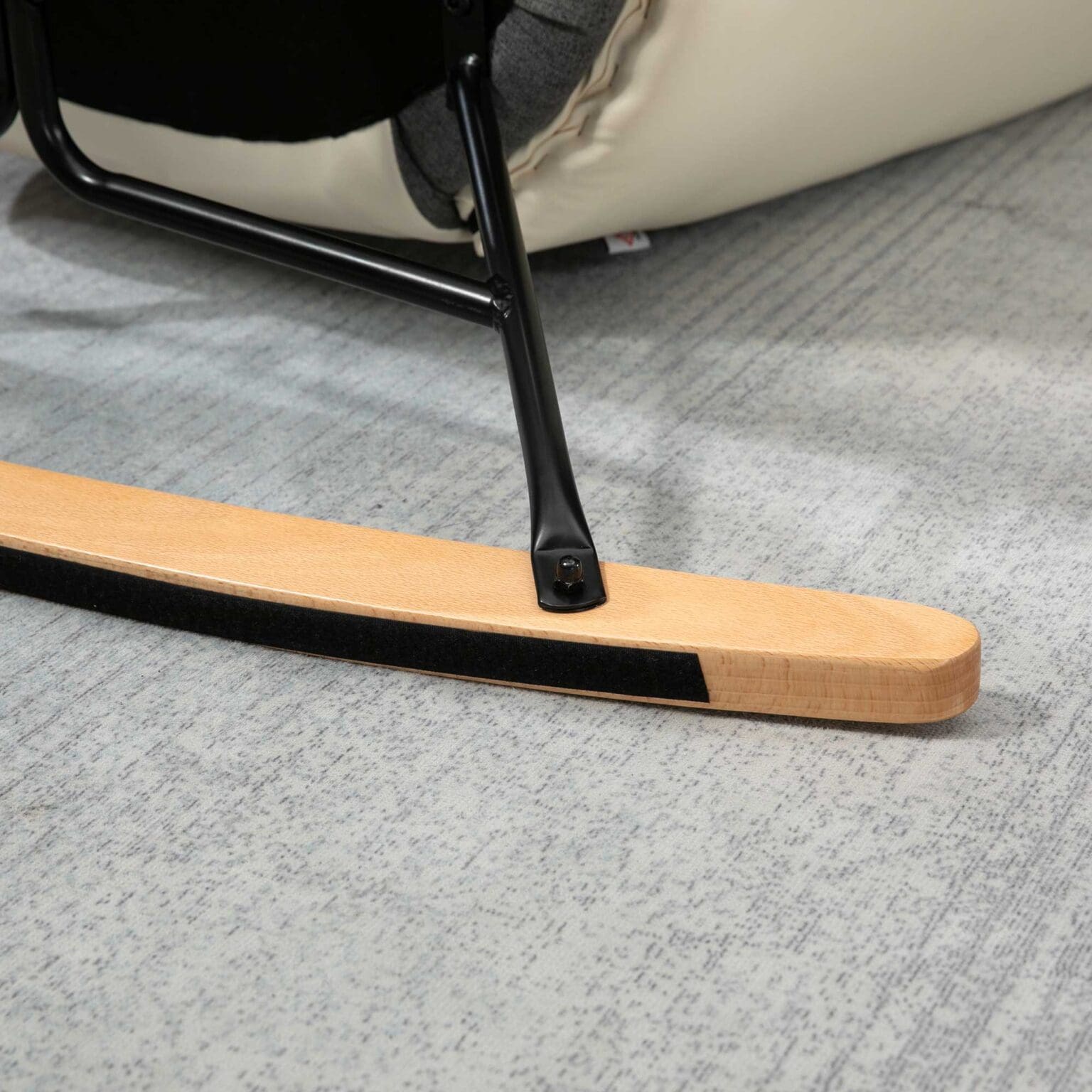 Introducing the Homcom Rocking Chair for Nursery, a beautifully designed upholstered wingback armchair in a sophisticated grey and cream color palette. This rocking chair is not just a piece of furniture; it is a sanctuary for parents and a cozy nook for little ones. Perfectly crafted for nurseries, living rooms, or reading corners, this chair combines style, comfort, and functionality to enhance your home.