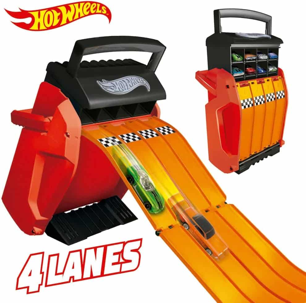 Elevate your playtime and keep your collection organized with the Hot Wheels HWCC4 2 in 1 Multilauncher Car Case, where adventure and organization meet!