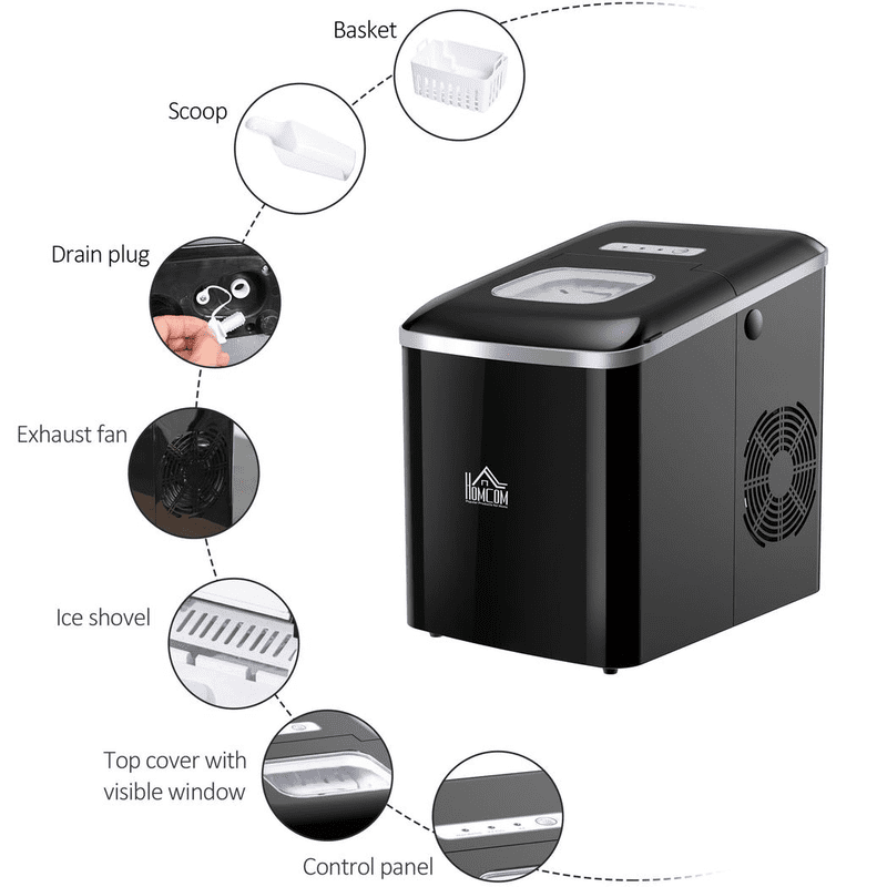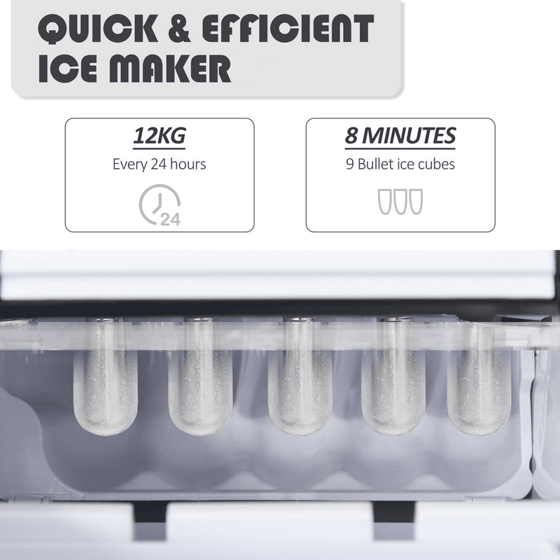 Enjoy refreshing drinks with the Homcom Ice Maker, producing 12 kg of ice daily!