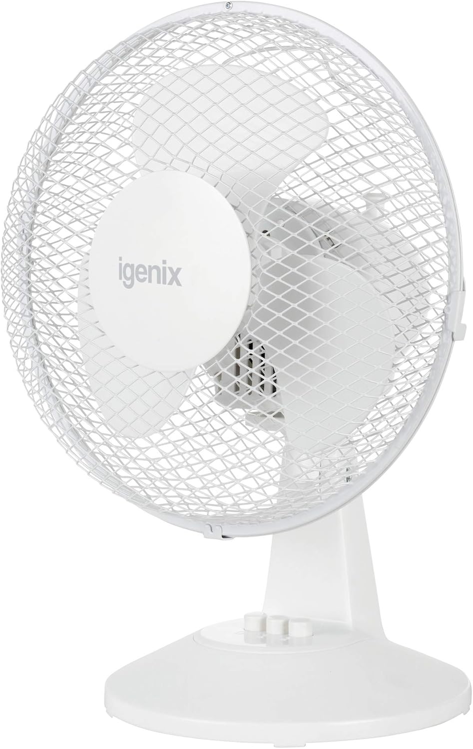 Introducing the Igenix DF9010 9 Inch Desk Fan in a sleek white design, the perfect solution for staying cool during those warm days. Whether you're working at your desk, relaxing at home, or needing some comfort in your bedroom, this fan delivers a refreshing breeze to keep you comfortable. With its compact size and modern aesthetics, the Igenix DF9010 seamlessly fits into any environment, making it an essential accessory for both home and office use.