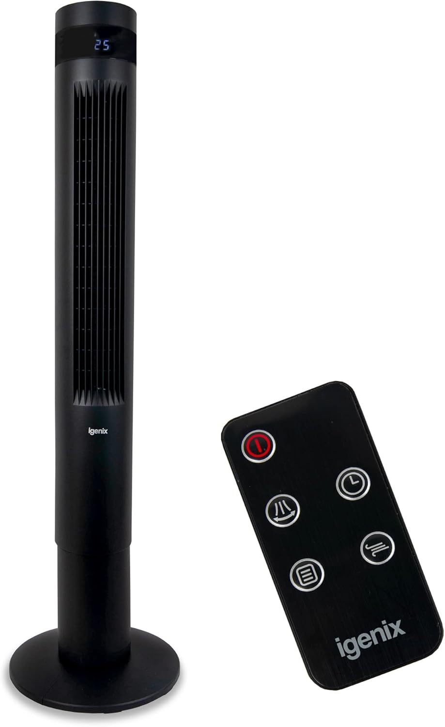The Igenix IGFD6043 B Tower Fan is engineered to offer a refreshing breeze while ensuring you maintain control over your comfort levels. It is perfect for use in living rooms, bedrooms, home offices, or any space where you want to beat the heat. The oscillation feature allows the fan to cover a wider area, making it ideal for larger rooms, while the multiple speed settings give you the freedom to select the intensity of the airflow according to your preference. The timer function adds convenience, enabling you to set the fan to turn off automatically after a certain period, which is particularly useful during nighttime use.