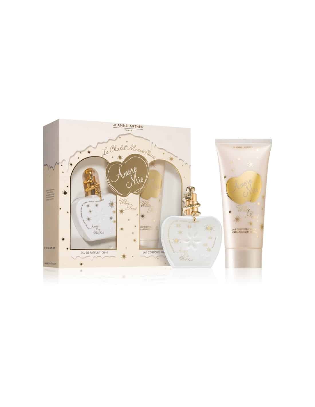 Experience the enchanting allure of Jeanne Arthes Amore Mio White Pearl Gift Set, a luxurious duo designed to pamper your senses and elevate your daily routine. This exquisite gift set includes a 100 ml Eau de Parfum and a 200 ml Sparkling Body Lotion, perfectly complementing each other to create a harmonious fragrance experience. Ideal for gifting or indulging yourself, this set is a celebration of femininity, elegance, and sophistication.