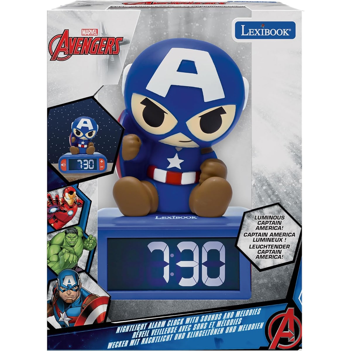 Brighten bedtime with the Lexibook Captain America Clock—featuring a night light and fun design!