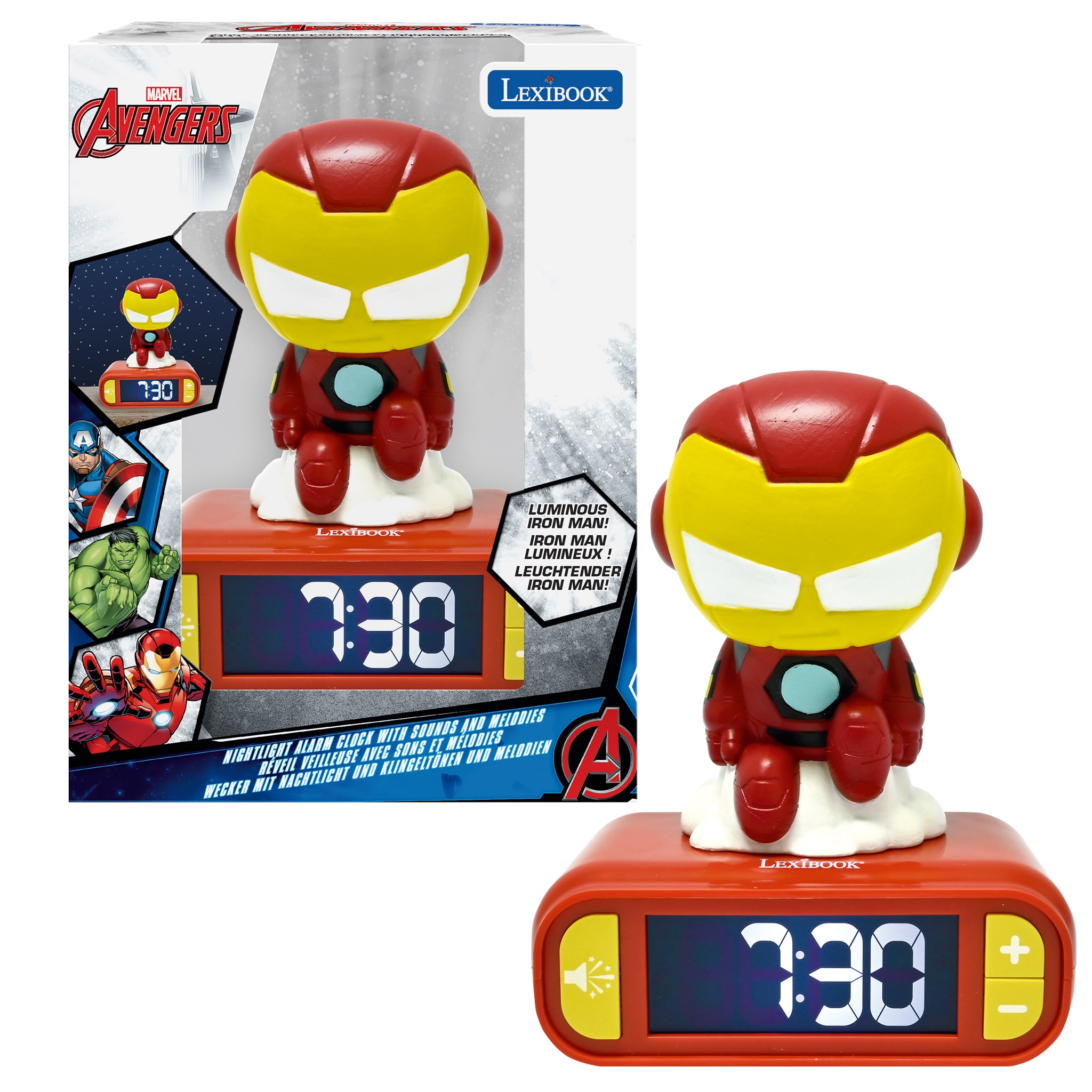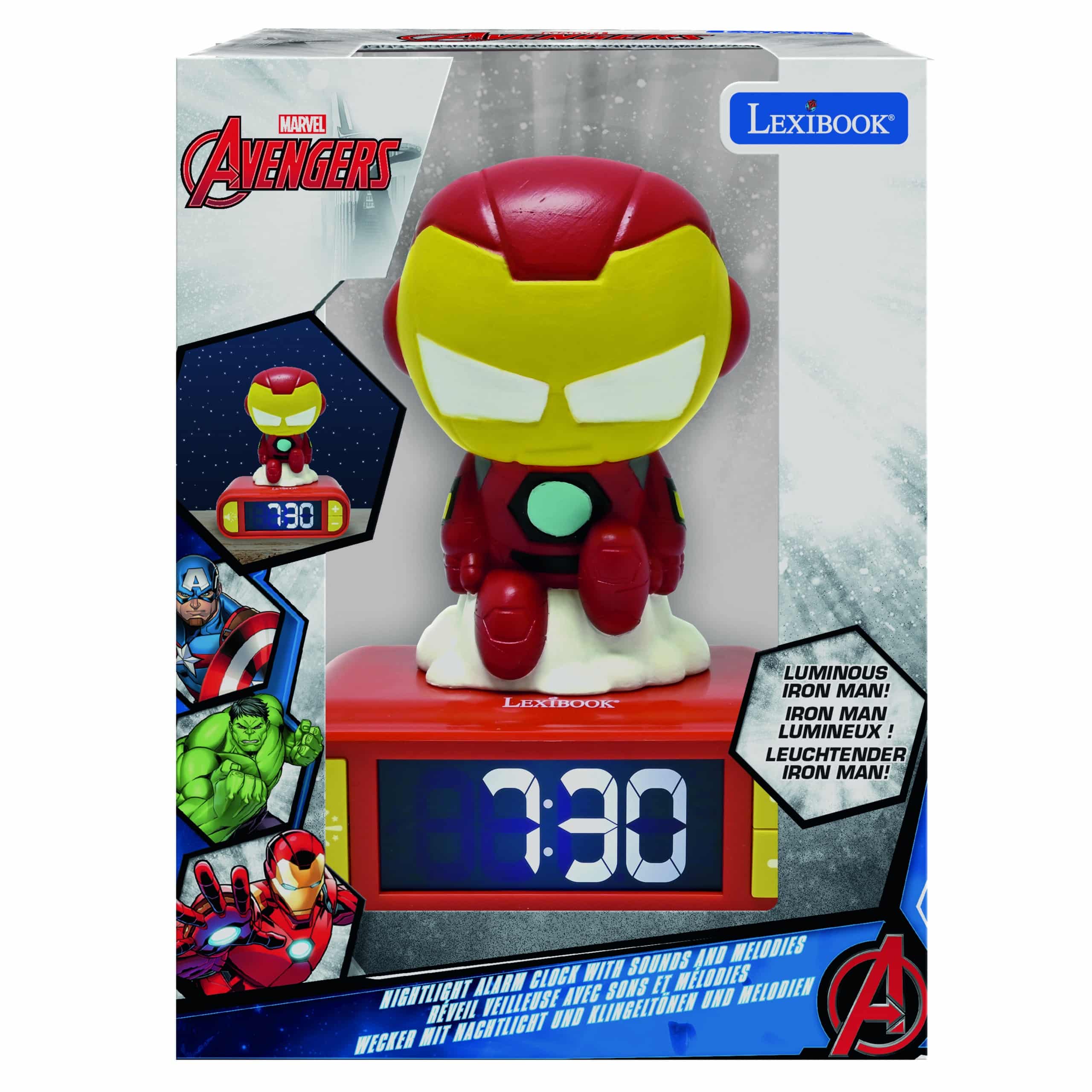 Brighten bedtime with the Lexibook Iron Man Clock, featuring a night light and fun design!