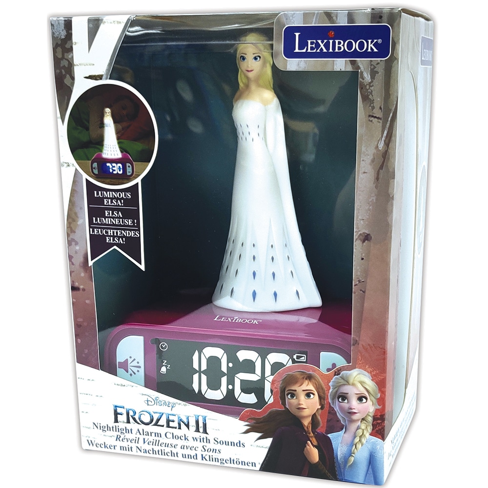 Brighten bedtime with the Lexibook Frozen II Elsa Clock, featuring a soothing night light!